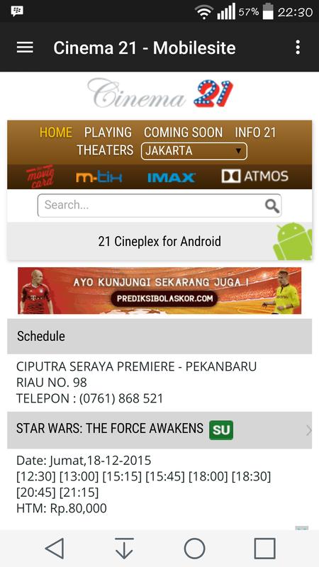 Jadwal film bioskop21 maret 2015. Jadwal film bioskop xxi cinema 21 daftar film bioskop cinema 21 ini saya ambil langsung dari situs cineplex 21, dari beberapa film yang akan dikeluarkan bulan maret 2015 ini dari berbagai jenis genre atau kategori yang dapat sobat sesuaikan dengan selera dan kemantapan. Toba dreams (film indonesia terbaru 2015) info film bioskop. Trailer film toba dreams 2015 bioskop sebuah film terbaru garapan sutradara benny setiawan yang diproduksi oleh semesta productions, tb silalahi center dengan judul *toba dreams* yang merupakan film indonesia terbaru 2015 dengan genre drama. Dan film ini akan segera tayang di bioskop indonesia mulai bulan april 2015. Jadwal bioskop cibinong city xxi bogor januari 2019. Jadwal21 ~ informasi update jadwal bioskop cibinong city xxi bogor minggu ini. Penggemar film 21 bioskop yang berada di wilayah bogor jakarta dan sekitarnya. Penggemar film 21 bioskop yang berada di wilayah bogor jakarta dan sekitarnya. Daftar bioskop 21 di bogor cinema 21. Jadwal tayang dapat berubah sewaktuwaktu tanpa pemberitahuan terlebih dahulu.(All schedules are subject to change without notice.) Silahkan pilih kota pada menu drop down untuk melihat 21 theater klik pada nama theater untuk melihat film yang sedang diputar pada theater tersebut. Jadwal rilis film bioskop di indonesia tahun 2018 bioskop today. Disclaimer jadwal film bioskop yang ada di bioskoptoday kami kutip dari website bioskop yang bersangkutan setiap hari. Jadwal bisa berubah sewaktuwaktu dari bioskop yang bersangkutan tanpa pemberitahuan. Cinema 21 we are the largest cinema chain in indonesia. Untuk kedua kalinya cinema xxi raih penghargaan brand of the year. Kota jambi kembali dilengkapi bioskop cinema xxi hadir di kota gresik. Satu persatu kota. Jadwal rilis film bioskop di indonesia tahun 2018 bioskop today. Disclaimer jadwal film bioskop yang ada di bioskoptoday kami kutip dari website bioskop yang bersangkutan setiap hari. Jadwal bisa berubah sewaktuwaktu dari bioskop yang bersangkutan tanpa pemberitahuan. Nama film jadwal tayang film bioskop 2015 (julidesember). Itu tadi info jadwal film terbaru yang akan tayang di bioskop sepanjang bulan juli hingga desember tahun 2015. Jika tidak ada perubahan, maka filmfilm tersebut akan tayang sesuai dengan tanggal yang tertera di atas. Perubahan masih bisa terjadi, berdasarkan keputusan pihakpihak terkait. Sekian info jadwal film kali ini.